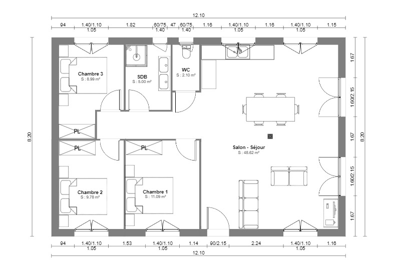 | Chambres | 3 |