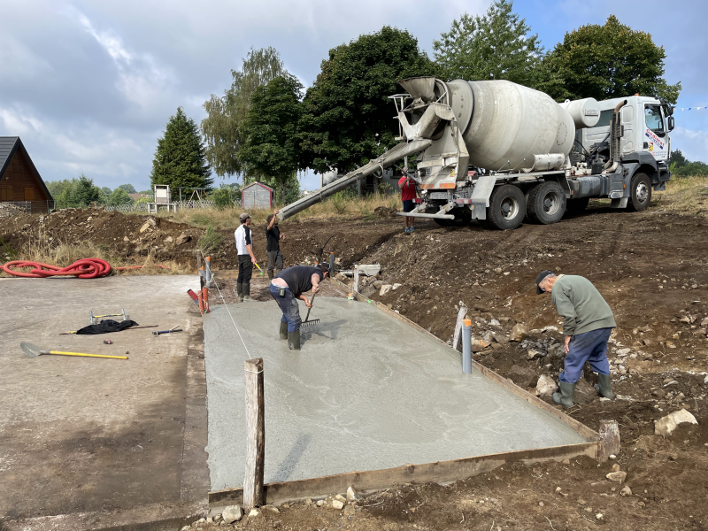 - Terrassement et fondations : le terrassement peut-être réalisé soi-même avec une mini-pelle louée (environ 300€/jour), pour économiser plusieurs milliers d’euros. Pour les fondations, il est possible de les faire soi-même avec un peu d’expérience et de commander un camion-toupie.